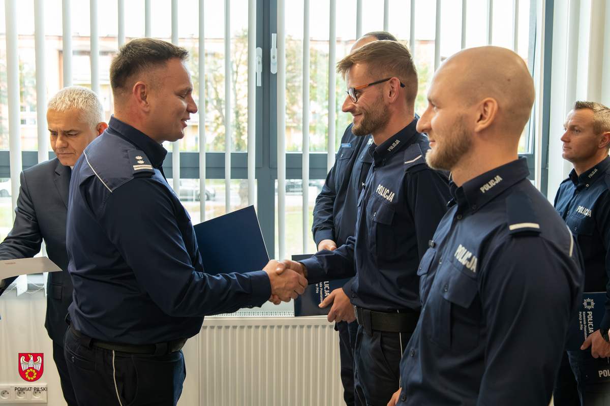 Policjanci z rąk starosty pilskiego odebrali okolicznościowe wyróżnienia. Uchwałą Rady Powiatu funkcjonariusze otrzymali także gratyfikacje finansowe.