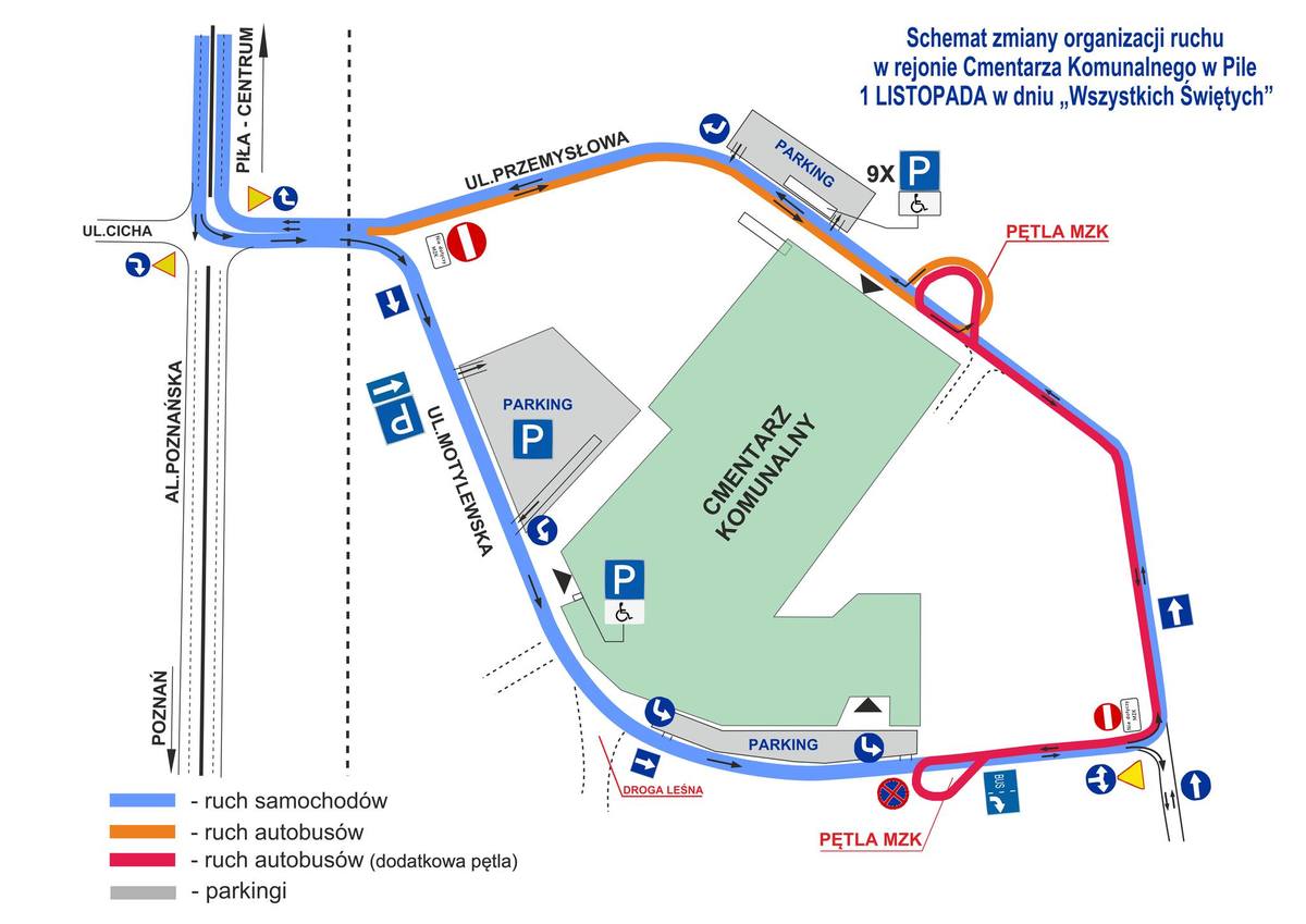 1 listopada, w rejonie Cmentarza Komunalnego w Pile nastąpi zmiana organizacji ruchu. Poniżej prezentujemy szczegółowe zmiany i zasady obowiązujące w dniu Wszystkich Świętych. Apelujemy także o zachowanie szczególnej ostrożności i stosowanie się do obowiązujących przepisów przez podróżujących.