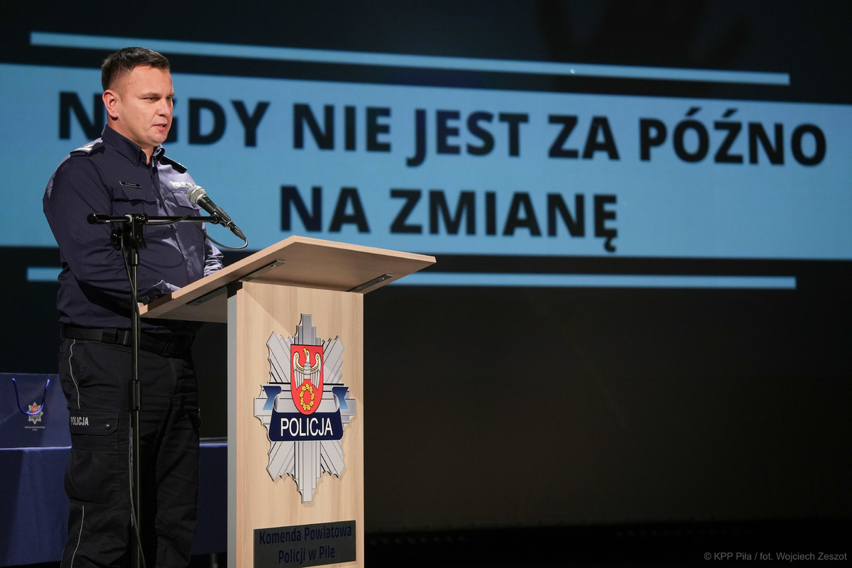 W Regionalnym Centrum Kultury w Pile odbyła się uroczysta premiera filmu profilaktycznego pt. „Nigdy nie jest za późno na zmianę”, którego pomysłodawcą byli funkcjonariusze Komendy Powiatowej Policji w Pile. Materiał będzie pokazywany uczniom w szkołach, aby uświadomić ich o obecnych zagrożeniach i wskazać gdzie szukać pomocy w kryzysie.