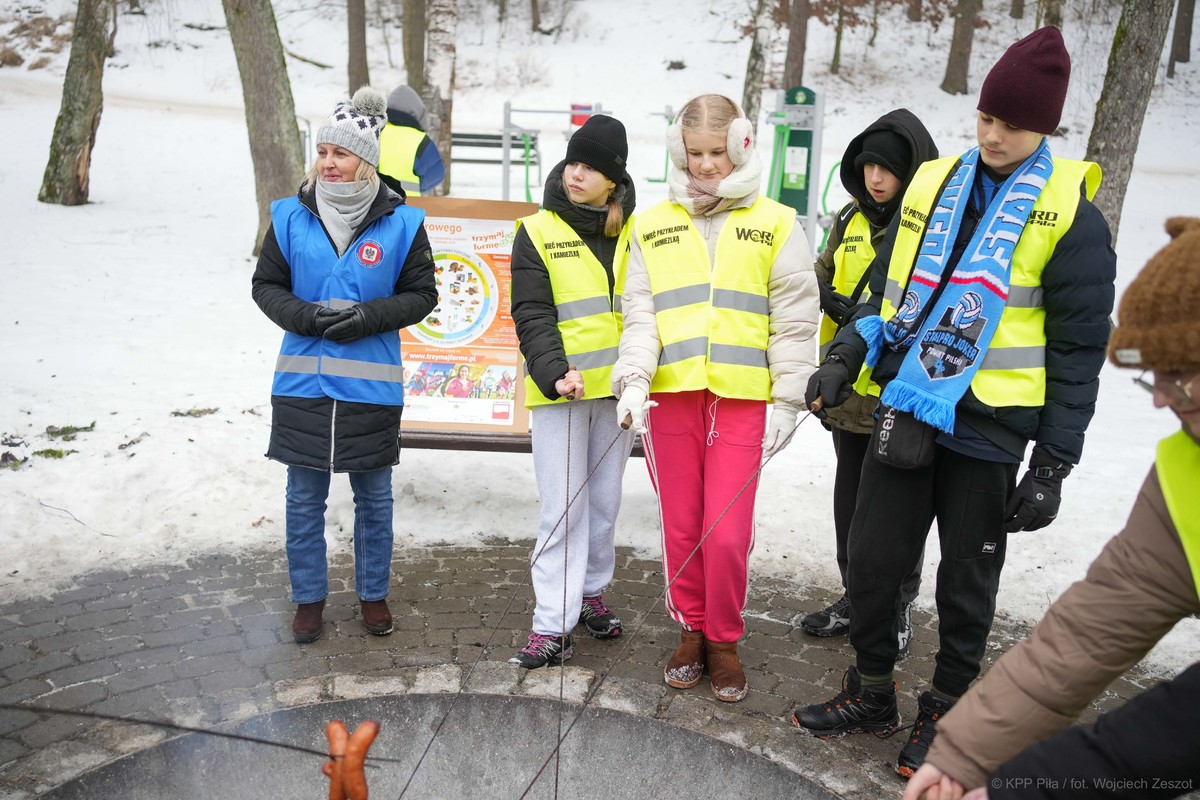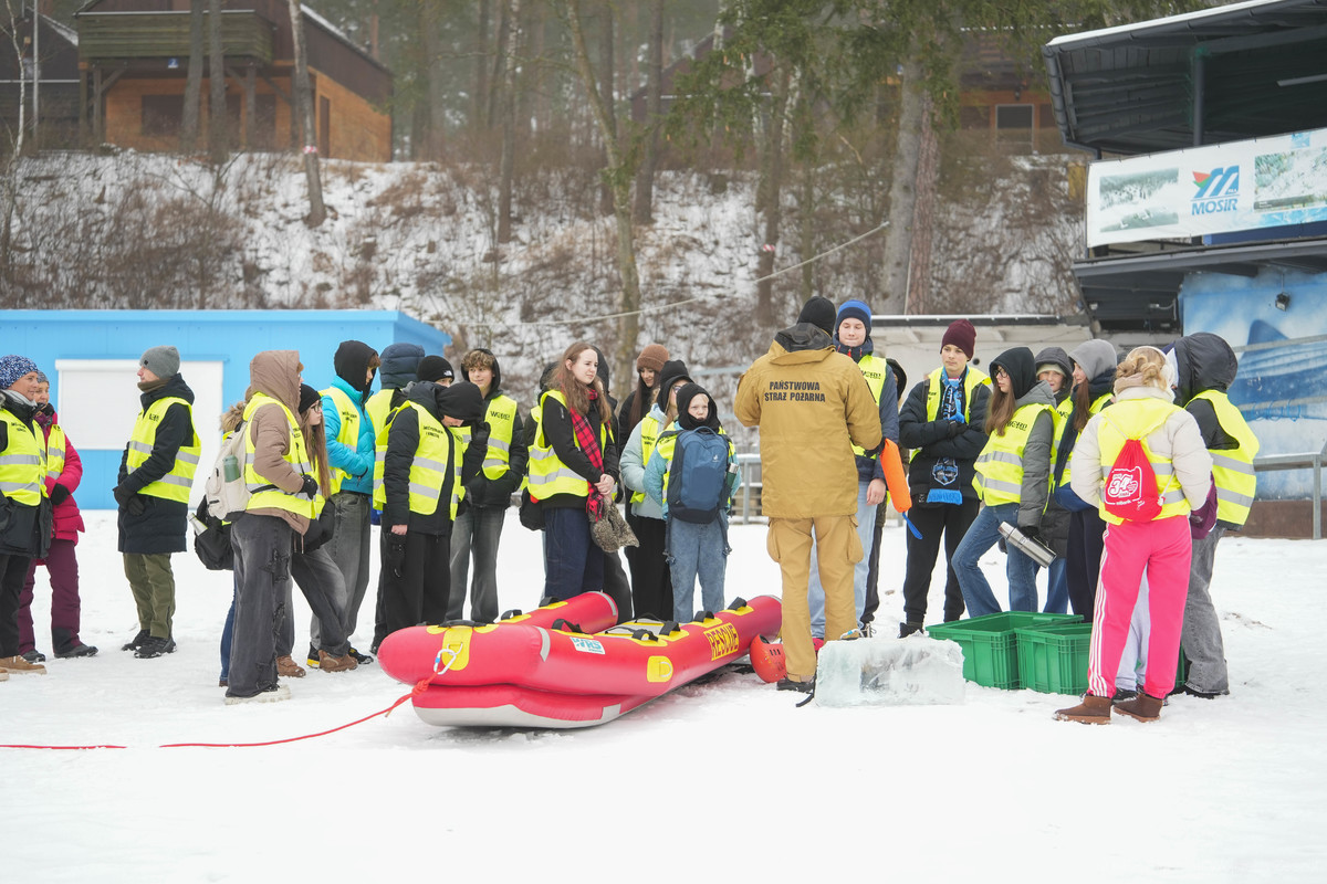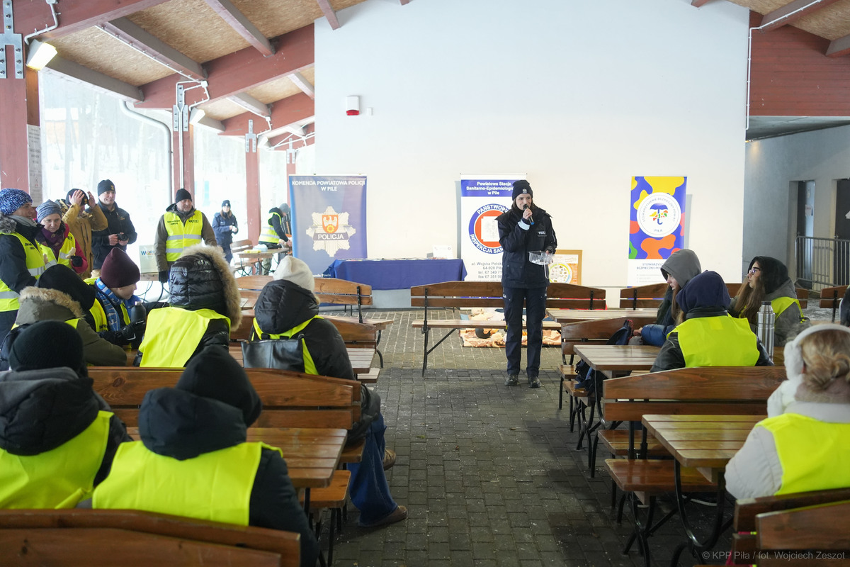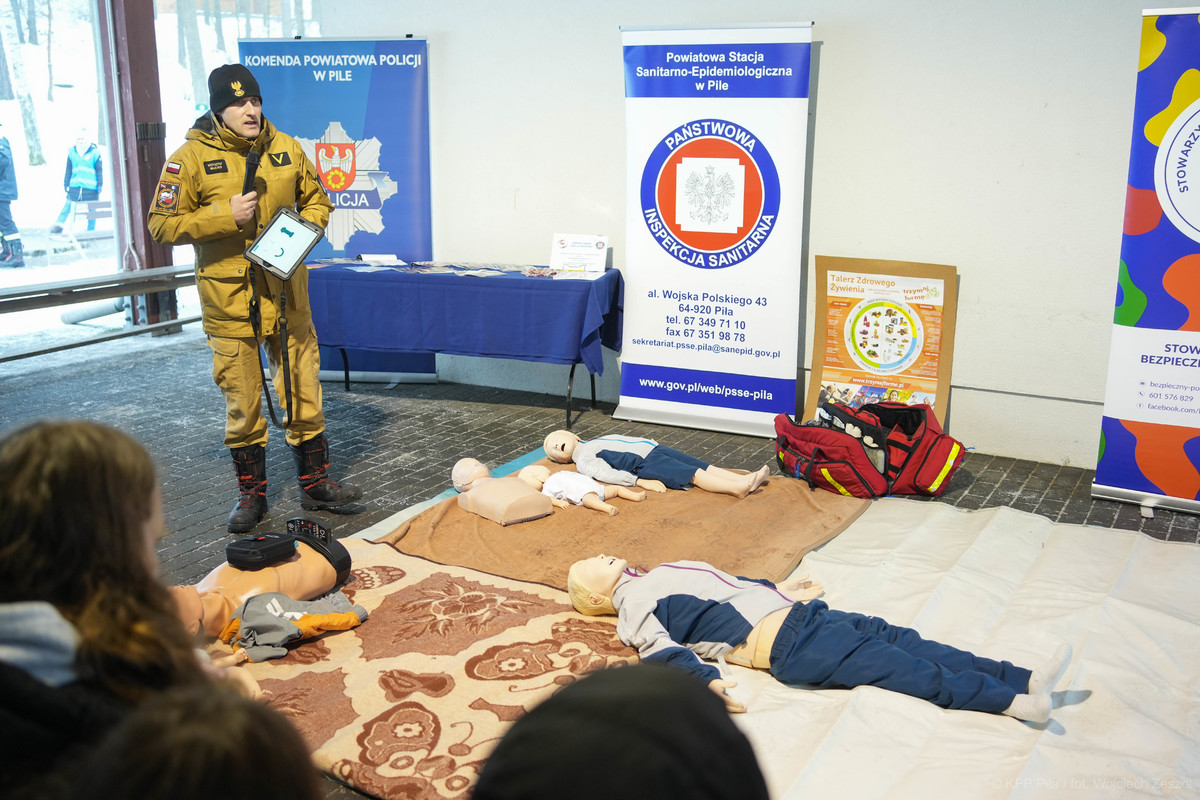 Strażacy zaprezentowali trzy założenia działań ratowniczych na lodzie. Zapoznali uczniów z wyposażeniem wozu bojowego, a także przypomnieli zasady udzielania pierwszej pomocy. Funkcjonariusze Komendy Powiatowej Policji w Pile rozmawiali na temat bezpiecznych zachowań w czasie zimowych aktywności. Przedstawicielki PSSE w Pile przedstawiły w jaki sposób dbać swoją odporność, a tym samym ograniczyć możliwość zachorowania. Dzięki Wojewódzkiemu Ośrodkowi Ruchu Drogowego w Pile każdy z uczestników wrócił do domu z założoną kamizelką odblaskową.