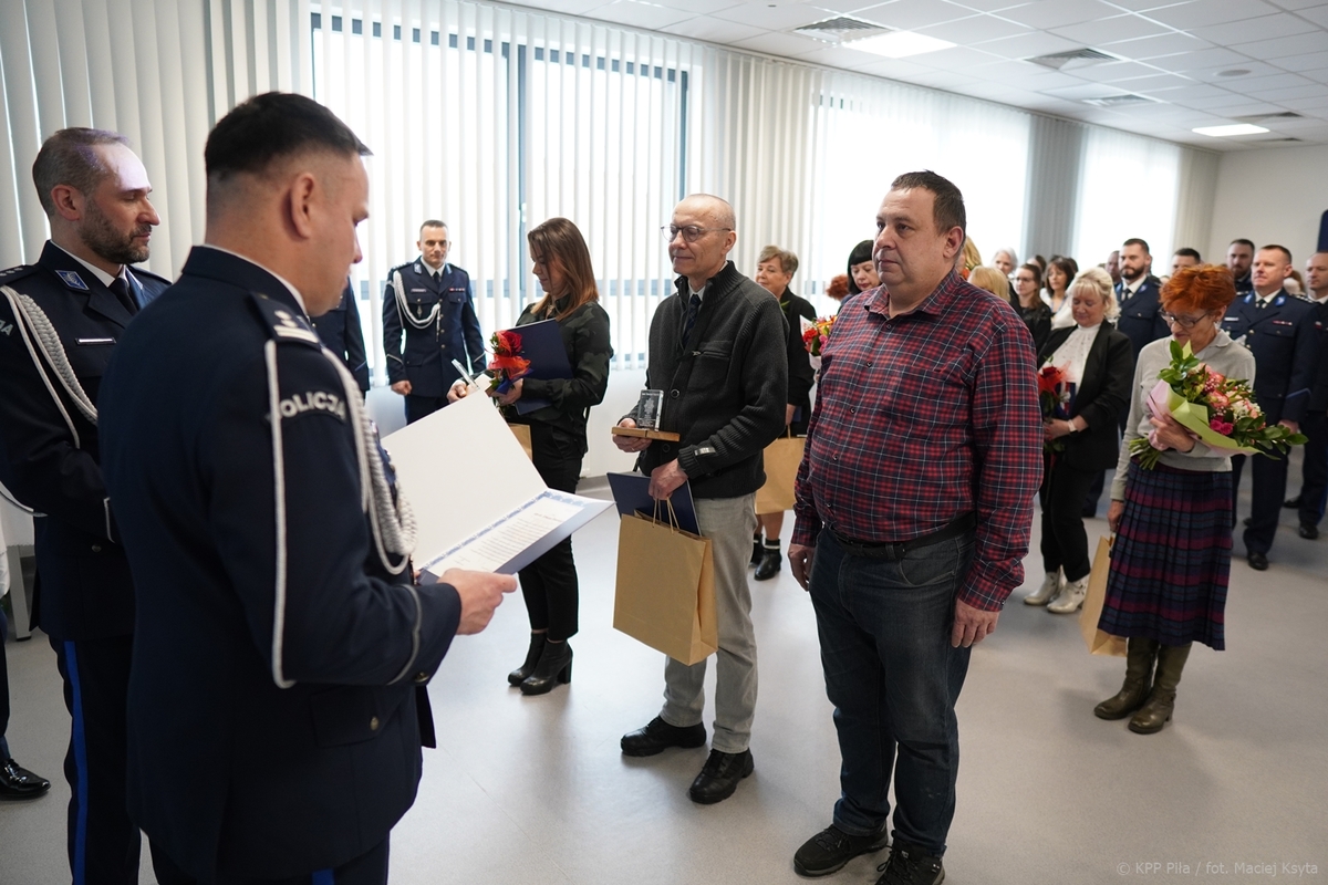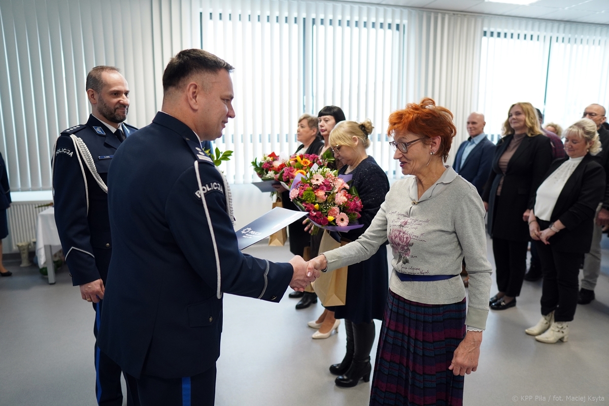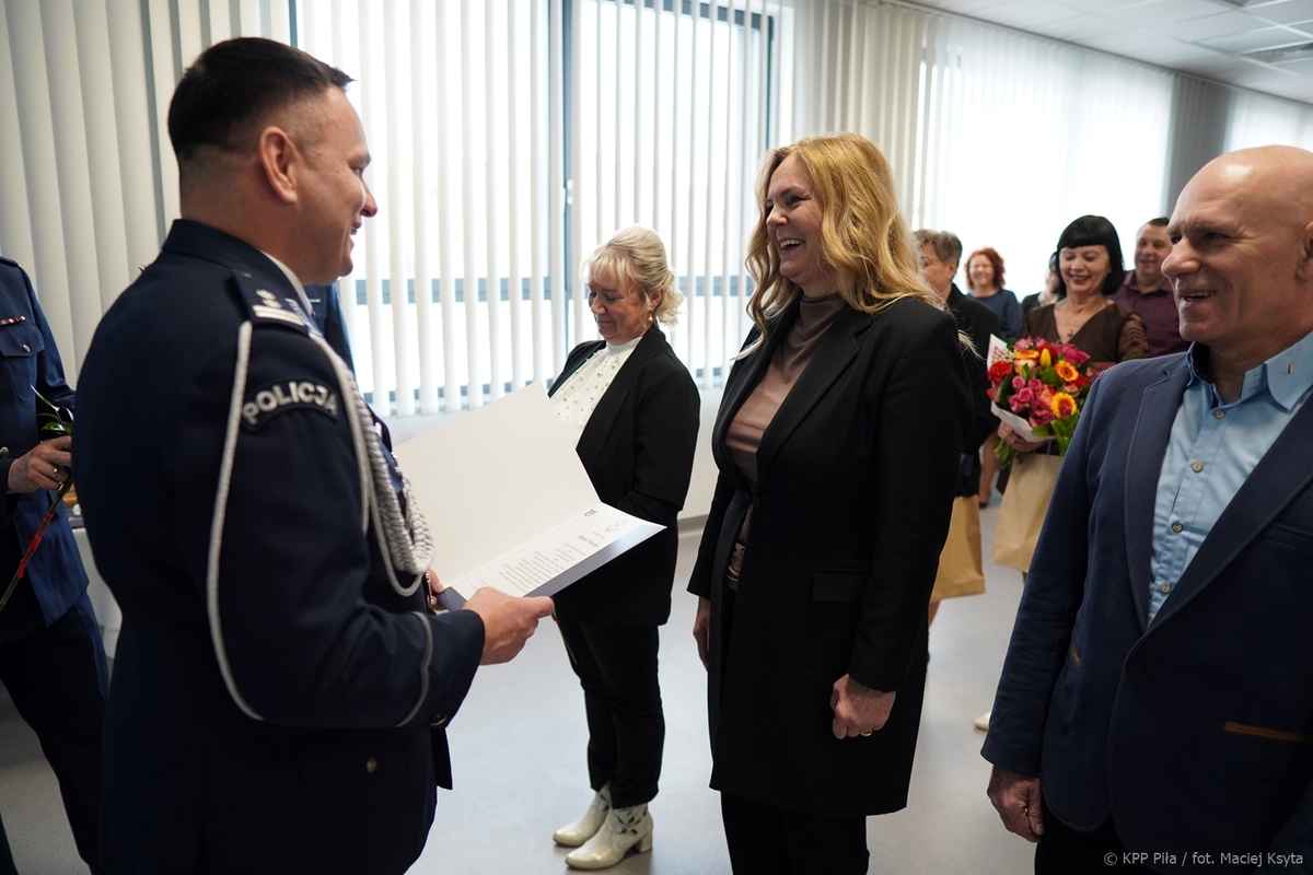 Pracownicy Komendy Powiatowej Policji w Pile zostali wyróżnieni na obchodach Dnia Służby Cywilnej na szczeblu wojewódzkim. Obchody tego uroczystego święta miały miejsce również w pilskie jednostce, gdzie spotkanie stało się okazją do wyrażenia wdzięczności i uznania dla wszystkich pracowników cywilnych. W trakcie uroczystości podziękowano pracownikom, którzy wkrótce odejdą na zasłużoną emeryturę oraz wyróżniono trzy osoby za długoletni staż pracy, doceniając ich zaangażowanie, profesjonalizm oraz wkład w funkcjonowanie jednostki. Był to również moment podziękowań dla funkcjonariuszy przechodzących na emeryturę policyjną – za lata oddanej służby, doświadczenie i wkład w budowanie bezpieczeństwa na terenie powiatu pilskiego.