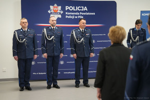 Dziś w auli Komendy Powiatowej Policji w Pile odbyła się uroczysta zbiórka z udziałem kadry kierowniczej pilskiej jednostki oraz pracowników cywilnych. Uroczystość była poświęcona zmianom na stanowiskach najwyższego szczebla. Komendant Powiatowy Policji w Pile przedstawił swoich zastępców, którzy od dnia dzisiejszego będą wspólnie z nim zarządzać jednostką.