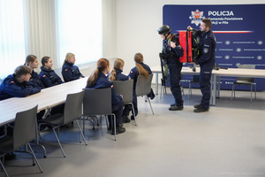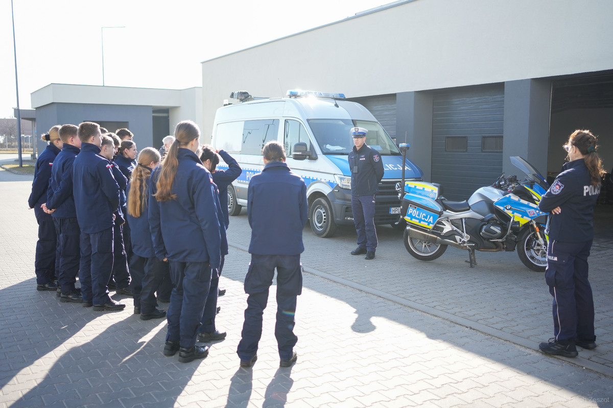 Dzisiejsza wizyta była również okazją do bezpośredniego spotkania z Komendantem Powiatowym Policji w Pile mł. insp. Marcinem Kowalskim, który zmotywował uczniów do angażowania się w prowadzone zajęcia w ramach ministerialnego projektu, co będzie miało pozytywny wpływ na ich mundurową przyszłość.